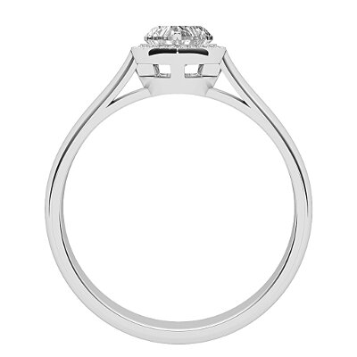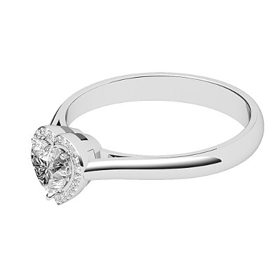 Ring solitaire halo vittoria white gold for heart-shaped diamond, classic band, 3 prongs.