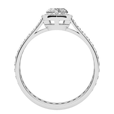 Ring solitaire halo vittoria platinum for heart-shaped diamond, full diamond band, 3 prongs.