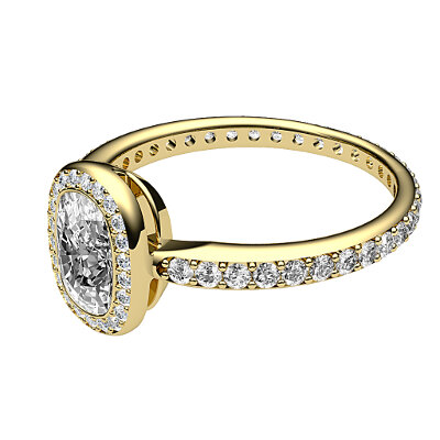 Ring solitaire halo yellow gold for cushion-shaped diamond, full diamond band, bezel .