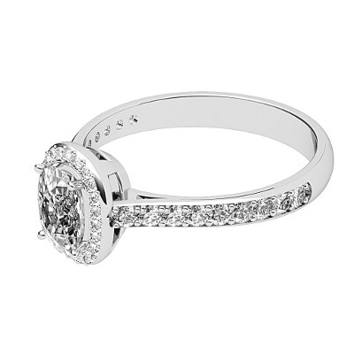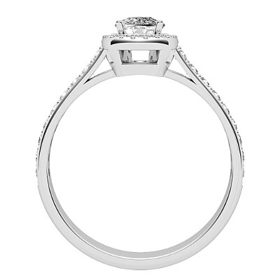 Ring solitaire halo vittoria platinum for cushion-shaped diamond, half diamond band, 4 prongs.