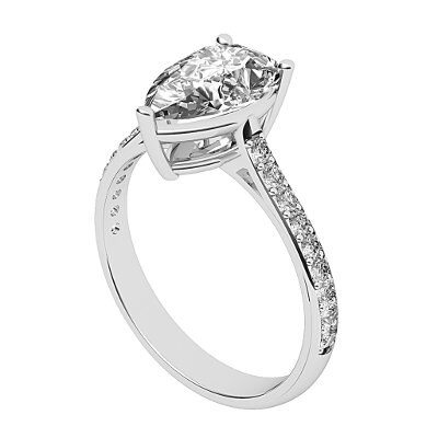 Ring solitaire vittoria platinum for pear-shaped diamond, half diamond band, 3 prongs.