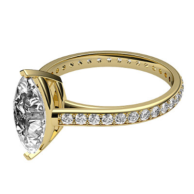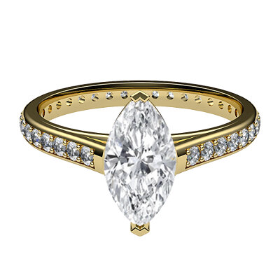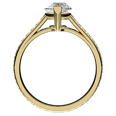 Ring solitaire trionfo yellow gold for marquise-shaped diamond, full diamond band, 2 prongs.