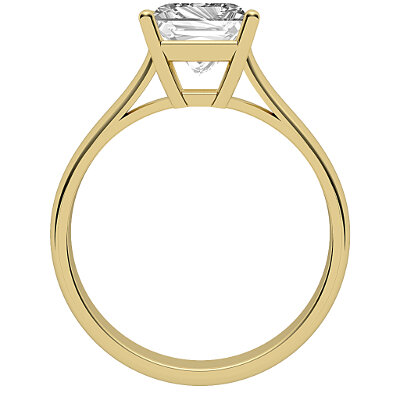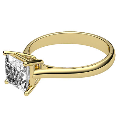 Ring solitaire vittoria yellow gold for princess-shaped diamond, classic band, 4 prongs.
